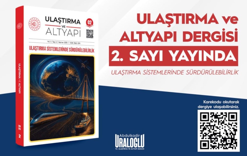 Bakan Abdulkadir Uraloğlu, Ulaştırma ve Altyapı Bakanlığı tarafından yayımlanan hakemli ve multidisipliner akademik yayın “Ulaştırma ve Altyapı" dergisinin ikinci sayısının okuyucuyla buluştuğunu açıkladı.