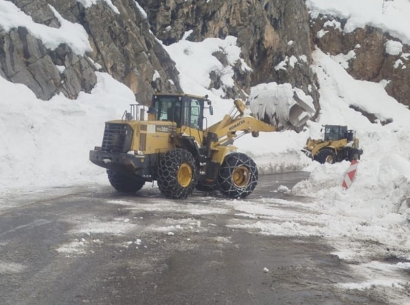 İl Özel İdaresi ve karayolları ekiplerinin yolları açma çalışmaları sürüyor.