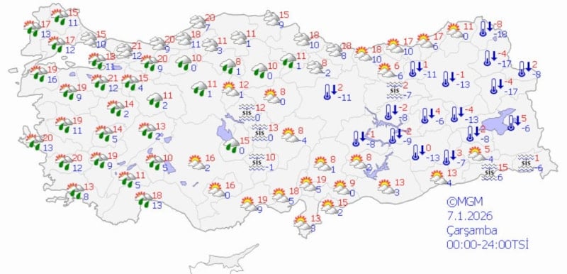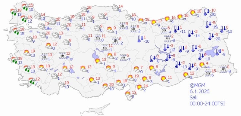 İstanbul 15, Ankara 11, Bursa 20 ve Antalya 19 derece.