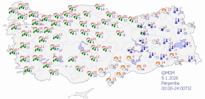 Perşembe günü ise sıcaklıkların 8-10 derece birden düşerek kış değerlerine gerileceği uyarısı yapıldı.