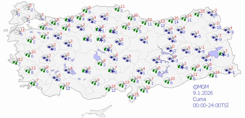 MGM haftalık raporuna göre yeni haftada, İstanbul, İzmir ve Ankara dahil Türkiye'nin neredeyse tamamında soğuk ve karlı hava etkili olacak.