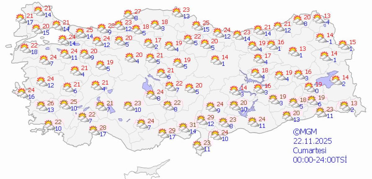 Hafta sonuna doğru, cumartesi günü güneşli bir hava bekleniyor; iç ve güney bölgelerde sıcaklıklar 25 dereceye yükselecek.