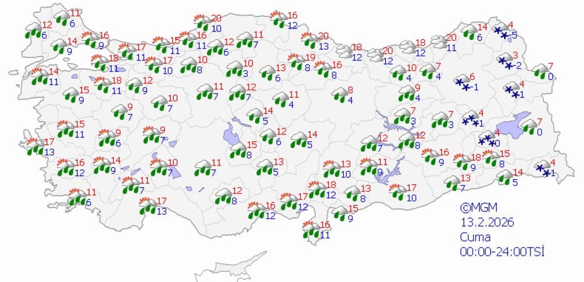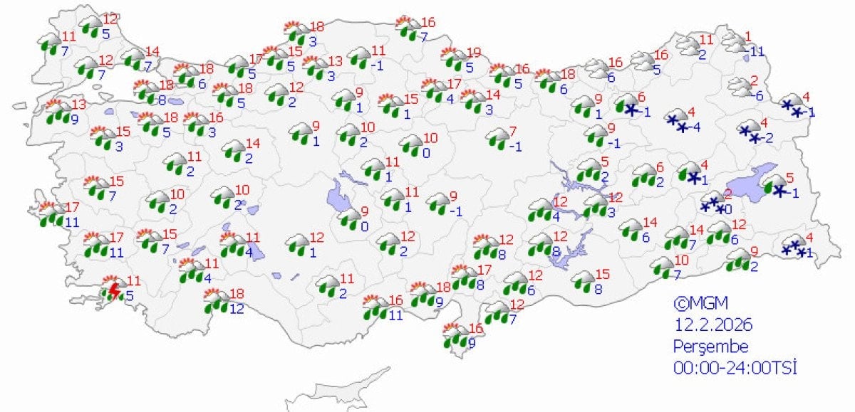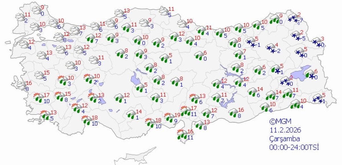 - Batı ve güney bölgelerde yağmur, iç ve doğu kesimlerde ise kar yağışı bekleniyor.