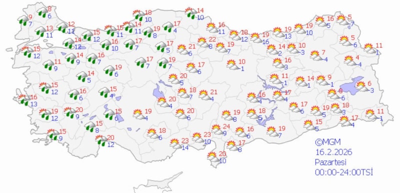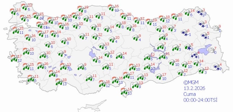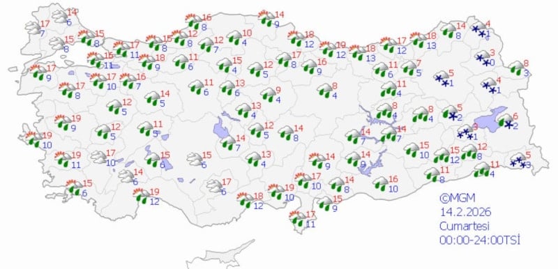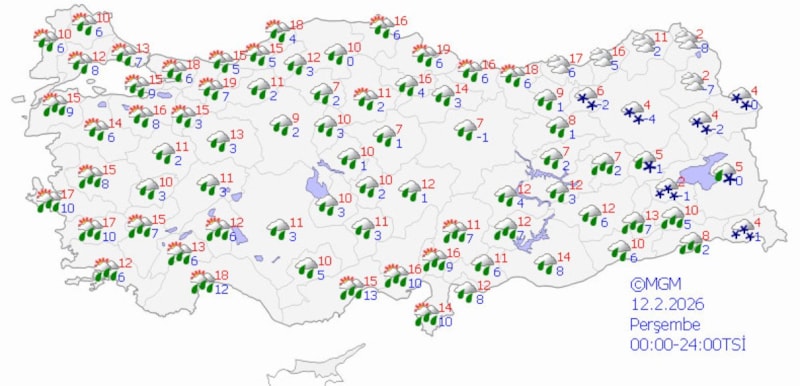 Kar yağışı yüksek rakımlarda sınırlı kalırken sıcaklıklar; kuzey, iç ve batı kesimlerde 3-5 derece artarak mevsim normallerinin üzerinde seyredecek.