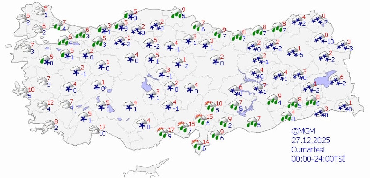 - Ülke genelinde soğuk hava etkisini sürdürüyor ve önümüzdeki günlerde iç ve doğu kesimlerde kar yağışı bekleniyor.