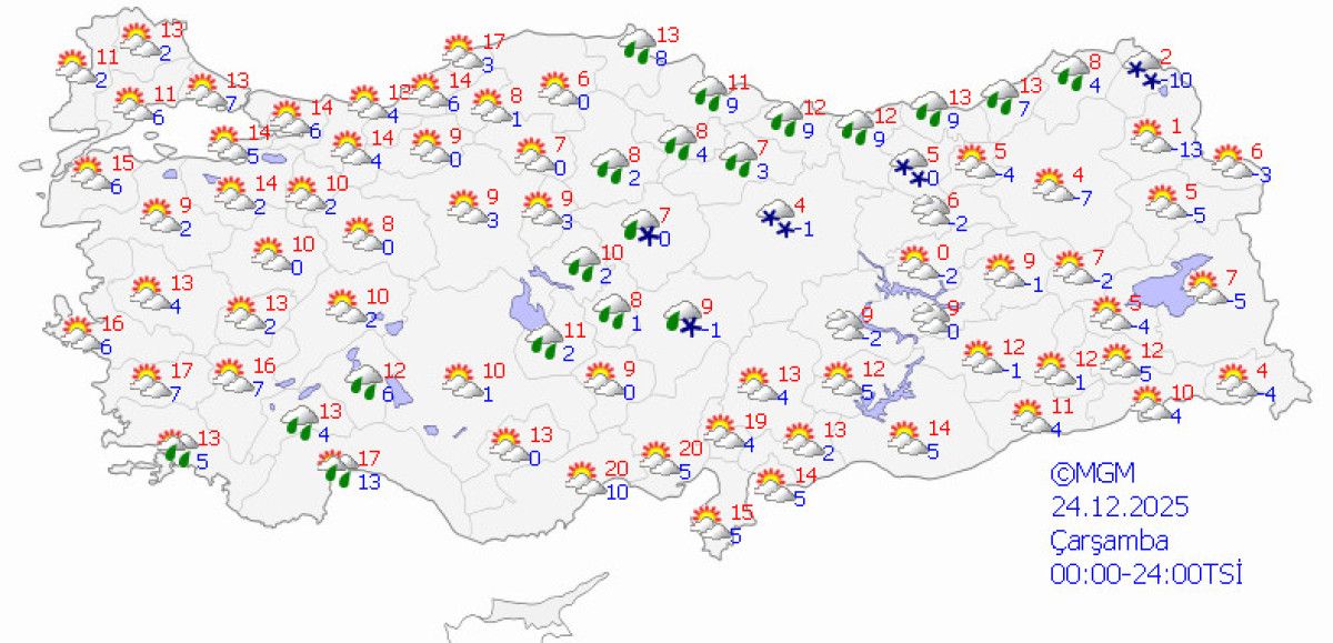 Başkent Ankara'da sıcaklıklar 7-12 derece, İstanbul 10-14 derece, Erzurum ve Kars gibi doğu illerinde -5 ile 5 derece arası olacak.