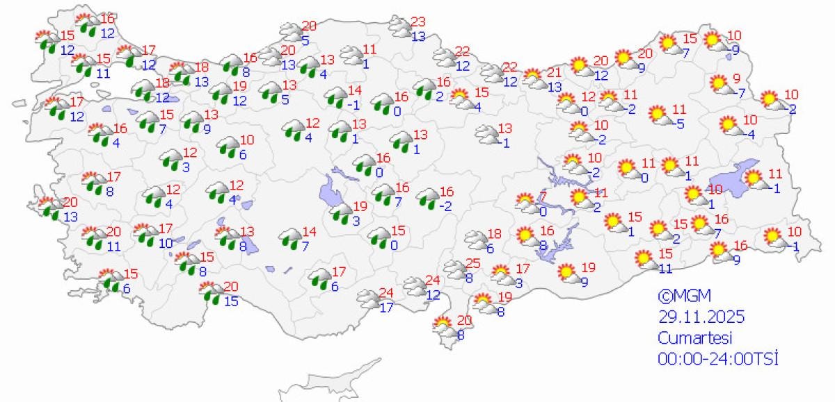- Türkiye genelinde soğuk hava ve yağışlı günler etkisini sürdürüyor.