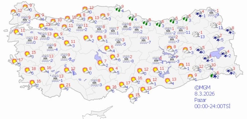 Sıcaklıklar batıda 10-15 derece, doğuda 0-8 derece civarında değişkenlik gösteriyor.