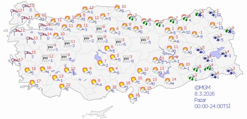 Pazar günü sıcaklıkların doğu ve iç kesimlerde daha soğuk, batıda 10-18 derece aralığında olması bekleniyor.