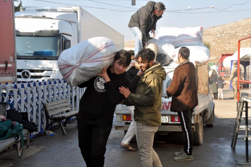 Sabahın ilk ışıklarıyla gümrük kapısına gelen Suriyeliler, Göç İdaresi Başkanlığı'nın mobil hizmet aracından işlemlerini yaptırıp, beraberinde getirdikleri eşyalarla birlikte ülkelerine geçiyor.