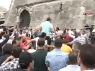 Burada basın açıklaması yapıldığı sırada ayrılan bir grup Topkapı Sarayı'na doğru koştu. İddiaya göre gruptakiler, Çinli zannettikleri Koreli turist grubuna saldırdı. Saray önünde bekleyen çevik kuvvet ekipleri araya girerek etten duvar ördü. Koreli turistler hemen olay yerinden uzaklaştırıldı.