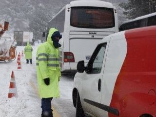 Bursa İl Jandarma Komutanlığı'na bağlı ekipler ise, dağ yolu başlangıç noktasından itibaren kontrollü ulaşımın sağlanması için belirli aralıklarla uygulama noktaları oluşturdu.