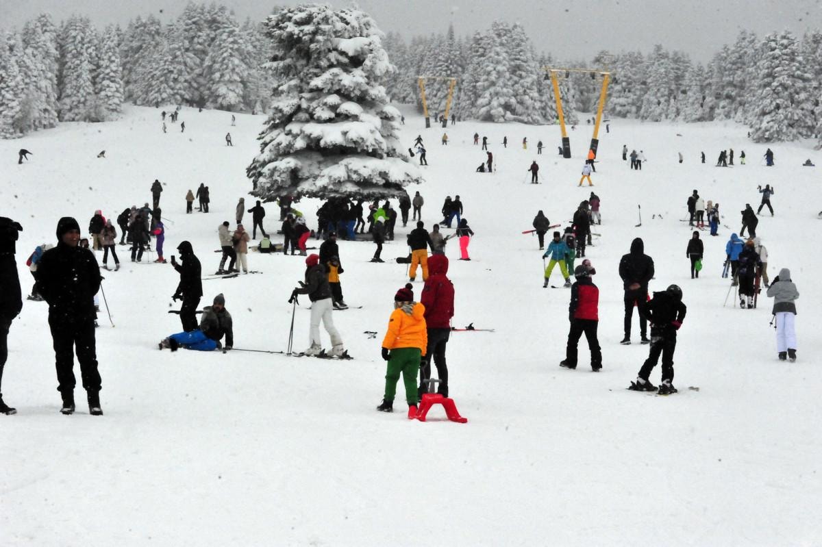 Kayakseverlerin ‘beyaz cennet’ olarak tanımladığı Uludağ'da, kayak pistleri tatilcilerle doldu.