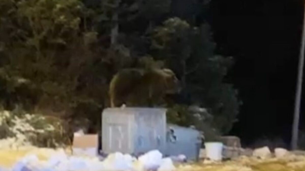 Yemek arayışına giren ayılar, çöp kutularını devirmeye başladı.