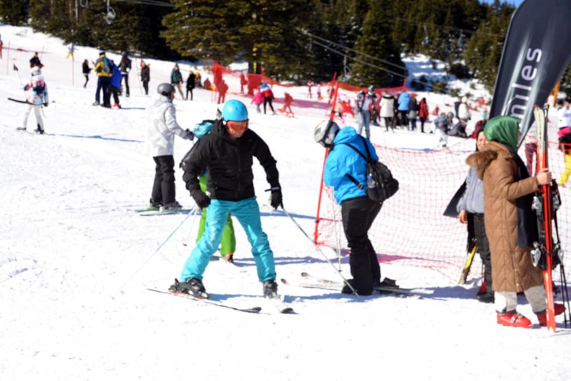 Kar yağışının aralıklarla etkisini gösterdiği Uludağ, kayak öğrenmek isteyenlerin de tercihi oldu.