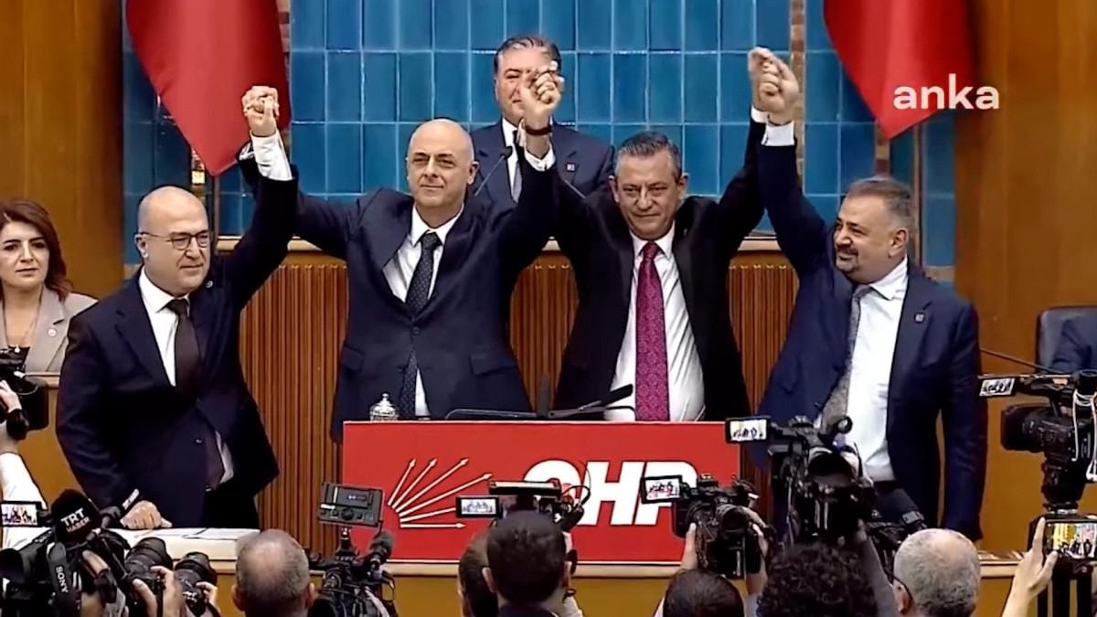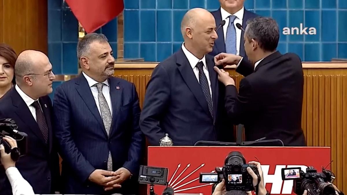 Ümit Özlale, dün yaptığı açıklamada CHP'ye katılacağını açıklamıştı. CHP Genel Başkanı Özel, Ümit Özlale'yi kürsüye davet ederek rozetini taktı.