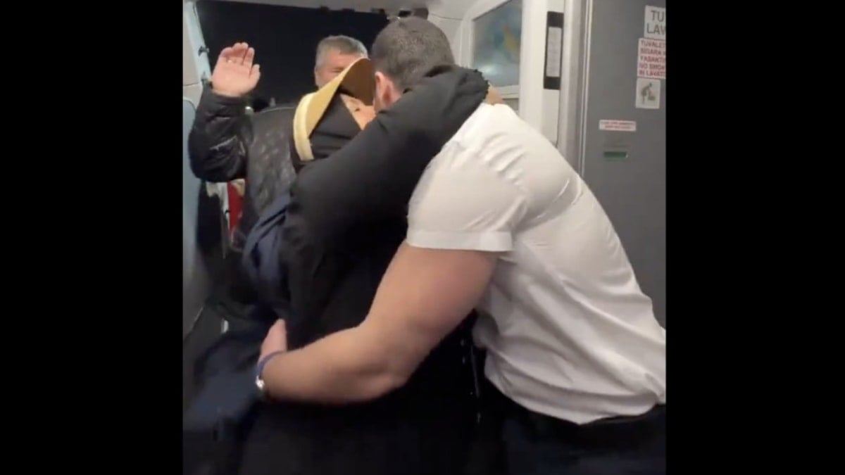 Yolcuların şaşkın bakışları arasında ailesiyle kucaklaşan Özdemir, ardından kokpite geçerek yaptığı anonsla herkesi duygulandırdı.