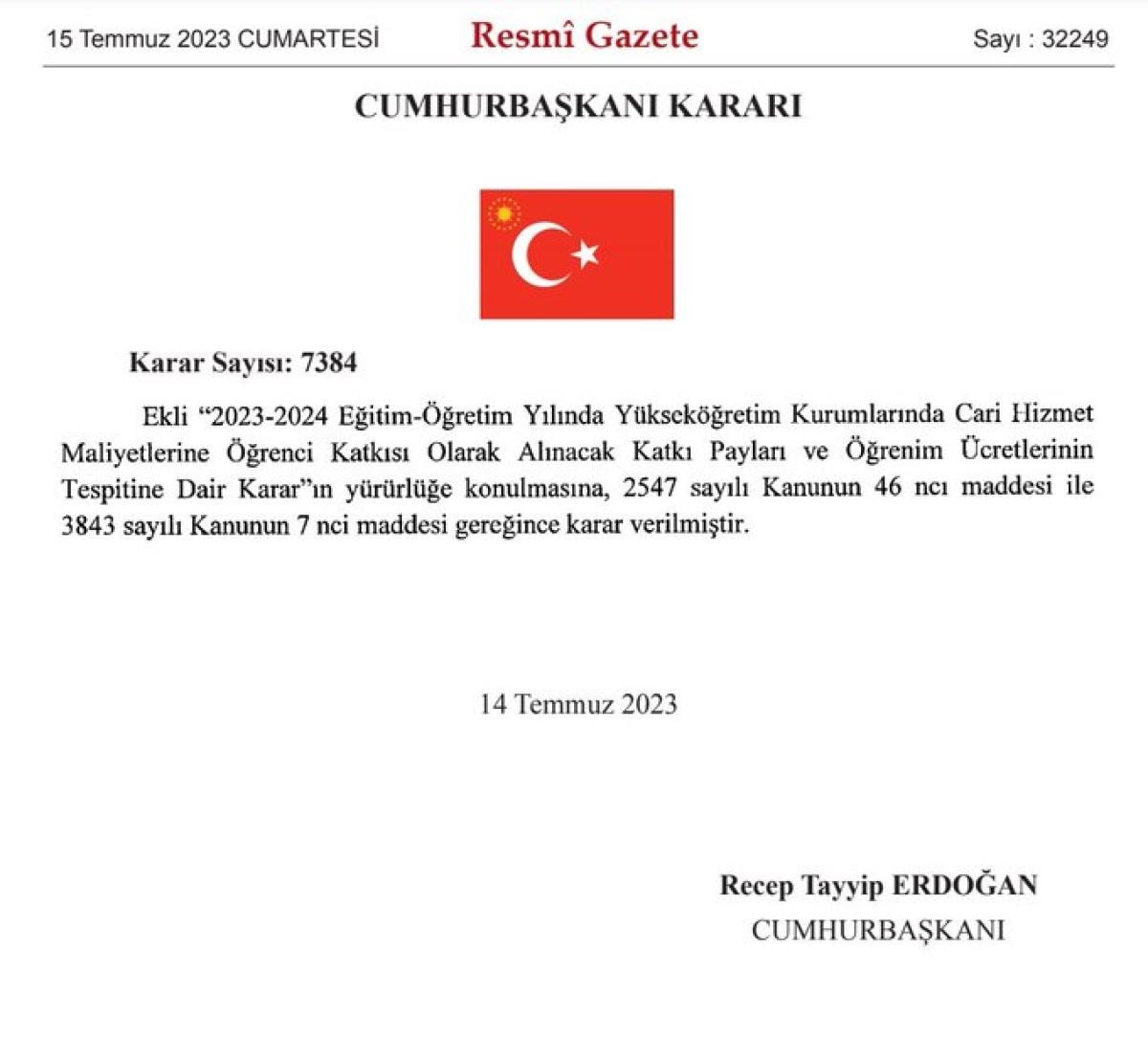Söz konusu karar ikinci öğretimde okuyan öğrencilerin öğrenim ücretlerinde artış getirdi. Cari hizmet maliyetleri geçen yıla göre 63,72 oranında artması sebebi ile ikinci öğretim öğrenim ücretleri de bu oranda artmış oldu.