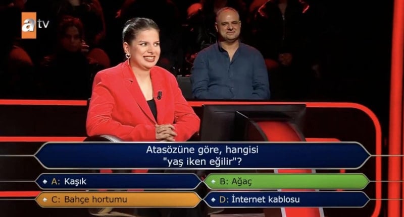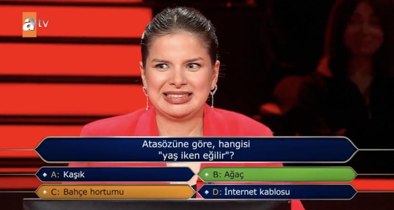 Işıkal'ın yarışmadaki ilk sorusu ise "Atasözüne göre, hangisi 'yaş iken eğilir'?" oldu.