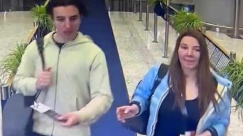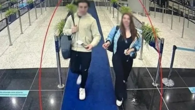 Oğluyla birlikte kaçan Eylem Tok'un o anları, havalimanı kamerasına saniye saniye yansıdı.
