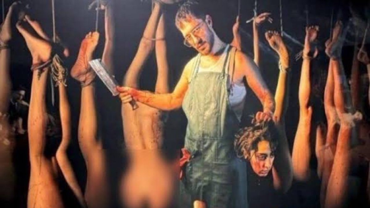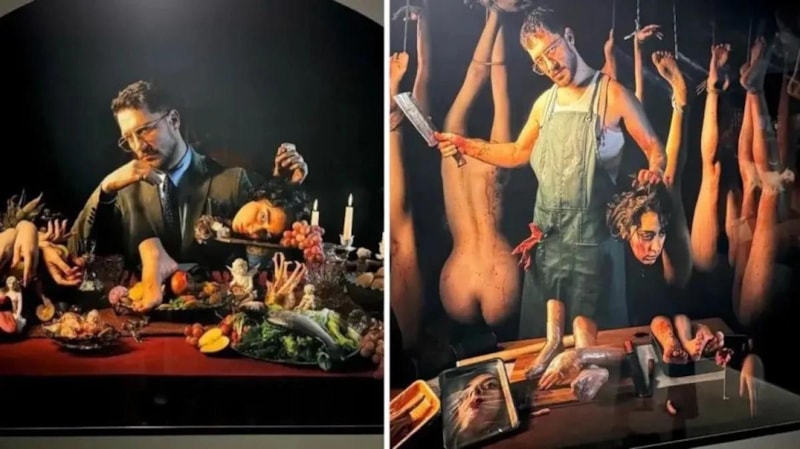 Elinde kasap bıçağı, kadın kafası ve kanlar içerisinde pozlar veren Kaygılaroğlu’na, “Kadın kasabı ‘sanatın’ İstanbul surlarında hayat buldu.” yorumları yapıldı.