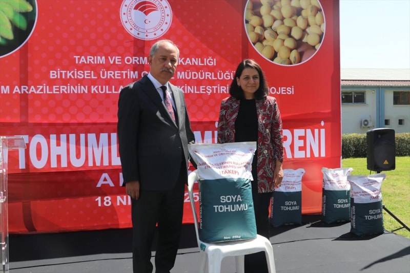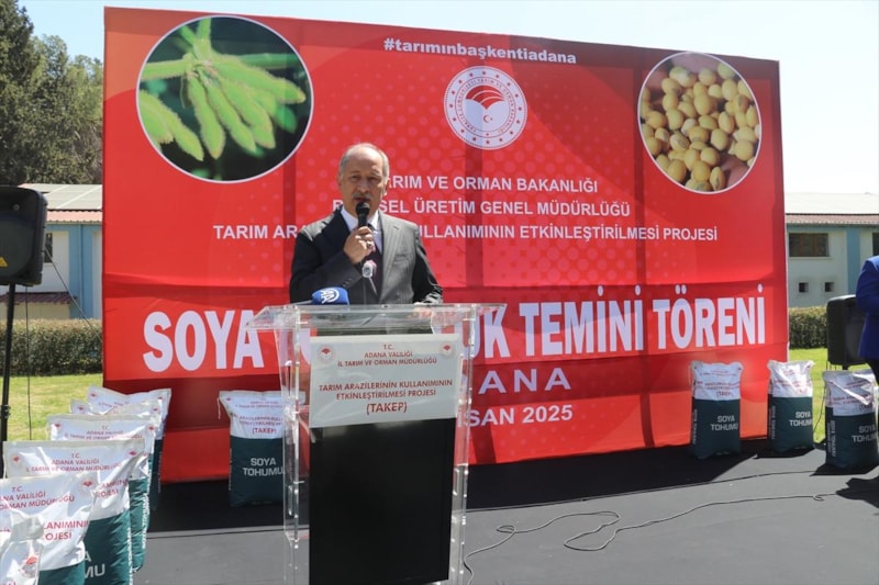 Tarım ve Orman Bakan Yardımcısı Abdulkadir Polat, Tarım ve Orman Bakanlığı 2025 Yılı Tarım Arazilerinin Kullanımının Etkinleştirilmesi Projesi (TAKEP) kapsamında Seyhan ilçesinde mahallelerde 150 çiftçiye 126 ton soya tohumu verilmesi dolayısıyla İl Tarım ve Orman Müdürlüğü'nde temsili tohum dağıtımı törenine katıldı.