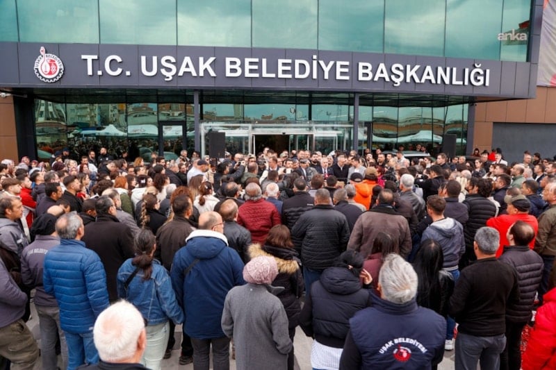 İstanbul Cumhuriyet Başsavcılığınca yürütülen soruşturma kapsamında Uşak Belediye Başkanı Özkan Yalım’ın da aralarında bulunduğu 13 kişinin gözaltına alınmasının ardından Uşak Belediye binası önünde CHP'ler nöbet tutmaya başladı.