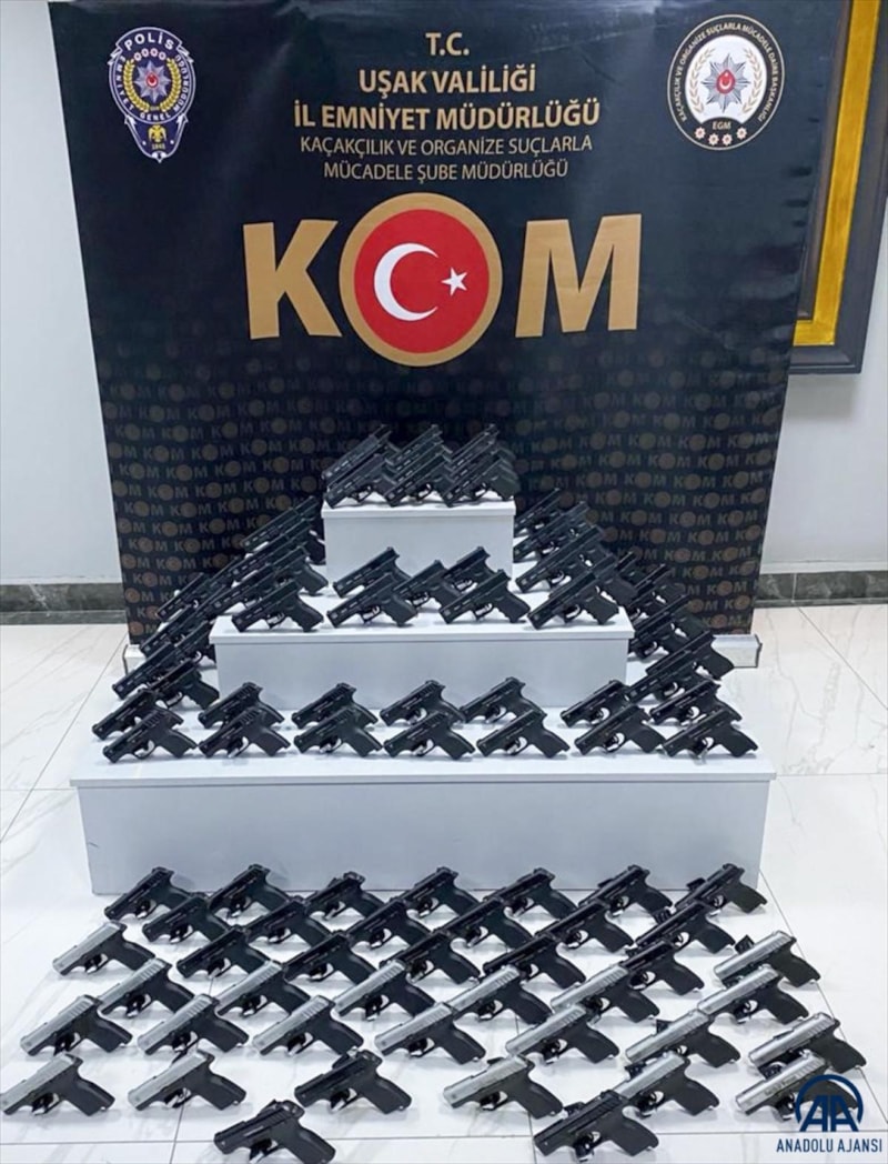 Otomobilde yapılan aramada, 100 ruhsatsız tabanca ve bu tabancalara ait şarjörler ele geçirildi.