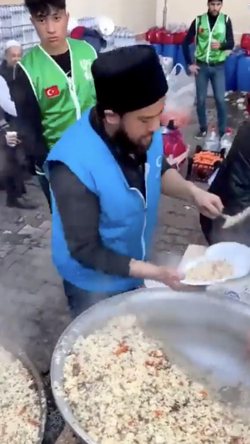 Deprem bölgelerinde tek yürek olan yerli ve yabancı vatandaşlardan depremzedelere yardımcı olmak isteyen Uygur Türkleri, depremzedelere yöresel pilav yaptı.