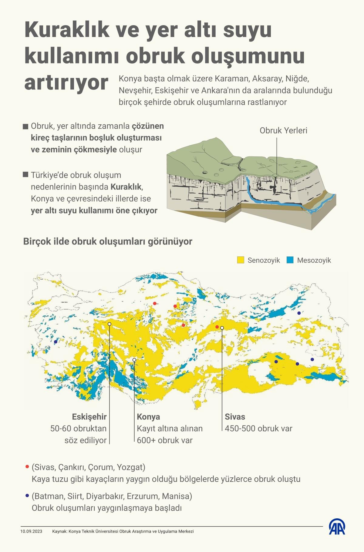 Arık, Türkiye genelinde obruk oluşum nedenlerinin başında kuraklığın, Konya ve çevresindeki illerde ise yer altı suyu kullanımın öne çıktığını vurguladı.