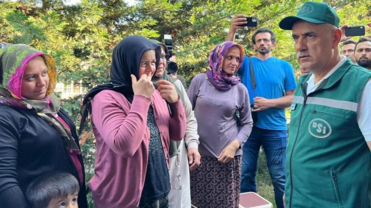 Sonrasında Gölyaka ilçesi İçmeler köyüne geçen Bakan Kirişci, burada selde zarar görün vatandaşlarla konuştu.