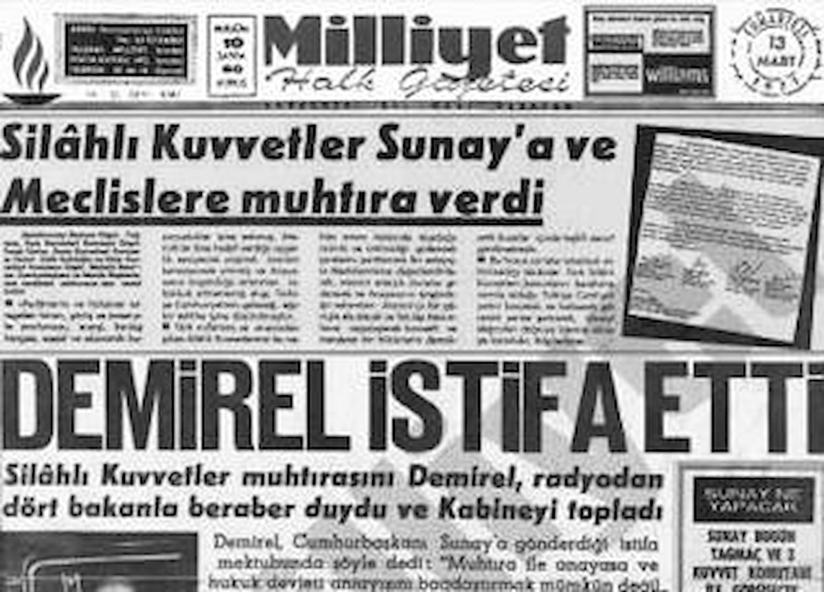 Cumhuriyet gazetesinde Nadir Nadi, 12 Mart darbesinin, “ordunun sesi” diyerek selamlarken, Milliyet’te de Abdi İpekçi, “halk muhtırayı olumlu karşıladı” diye yazıyordu. Tercüman gazetesinde ise merhum Ahmet Kabaklı, “Muhtıradan demokrasinin yara aldığını” dile getirmişti. Aradan birkaç yıl geçtiğinde ise Cumhuriyet ve Milliyet’in yazarları 12 Mart’ın demokrasiye darbe vurduğu görüşünü savunacaklardı.