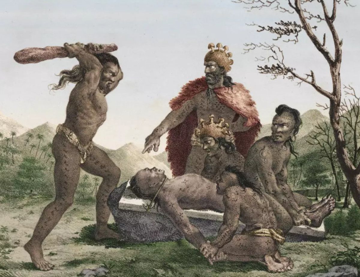 Kurbanlık kişi sokaklarda şarkılar eşliğinde gezdirilir, ahali onu kutsal saydığı için de saçından tel koparmak, tükürük ya da salyasına dokunmak için birbirleriyle yarışırlardı. Kurban töreni esnasında; afyonla uyuşmuş, kol ve bacakları kırılmış zavallı adam ya da çocuk (genellikle erkek olurdu) bir ağaç dalına (kaçamasın diye) sıkıştırılmış halde akıbetini beklerdi. Rahip baltayla ilk darbeyi vurur, daha sonra da kalabalık kurbana topluca saldırırdı. Zaman zaman hâlâ canlı olan kurbandan et ve kemik kopartıldığı da görülüyordu.