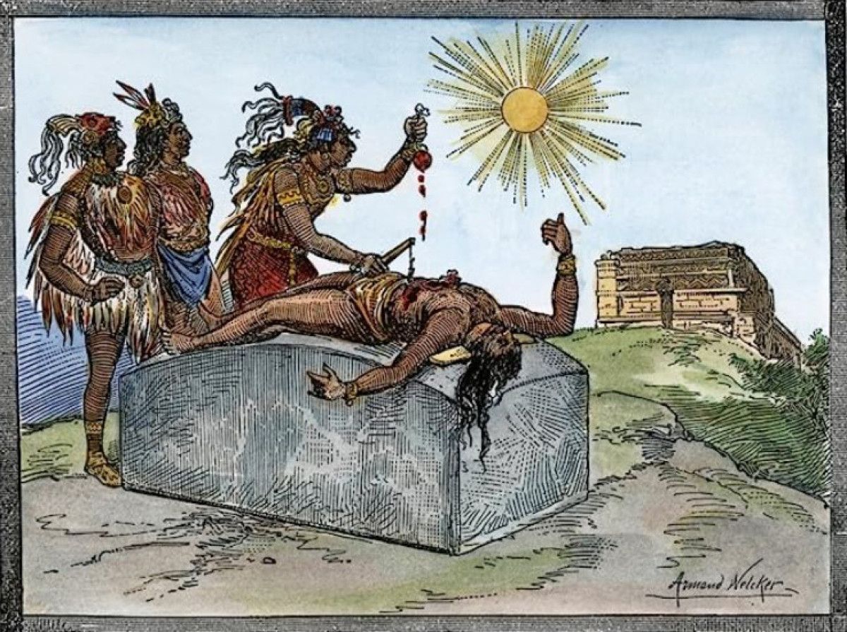 Azteklerde de çocuk kurban etme vardı. “İnsan kurban” çocuk, genellikle ya esir milletlerden elde edilir ya da evlilik dışı ilişkilerden doğan çocuklardan seçilirdi. Bu işlem için özenle beslenen çocuğun yanında genellikle kurbanlık bir domuz da olur, son ana kadar çocuk, kurban edileceğini bilmez, sadece domuzun kurban edileceğini zannederdi. 1487’de Büyük Tenochtitlan Piramidi’nin yeniden kutsanması töreninde bu acımasız Aztek topluluğu, dört gün boyunca yaklaşık 80 bin aşkın mahkûmu kurban olarak öldürmüştü. Kimi tarihçiler, Azteklerin tarihten adeta buharlaşır gibi yok olmasına; bunun, asırlarca kesintisiz bir şekilde sergiledikleri kolektif vahşete verilen ilahi bir ceza olduğu yönünde yorumlarda bulunmuşlardı.