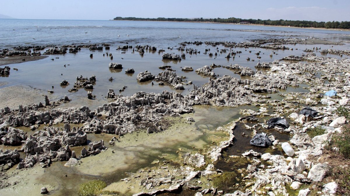 Gölün çekilmesiyle daha önce su altındaki bazı bölgeler ve mikrobiyalitler yeniden yüzeye çıkmaya başladı.