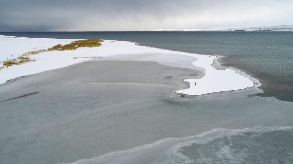 Gölün donması karşısında şaşkınlık yaşayan vatandaşlar, yüzeyde oluşan 30-40 metrelik buz tabakasının üzerinde yürüdü, fotoğraf çekti.