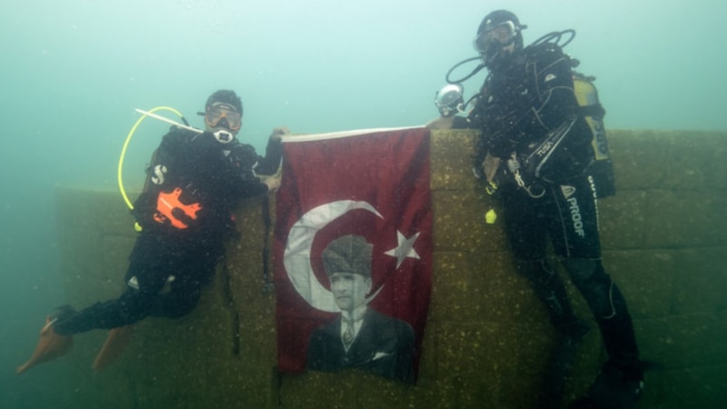 Dalış sırasında Bitlis’in Adilcevaz kıyılarındaki su altında kalmış kale kalıntıları ve Van’ın Edremit bölgesindeki mikrobiyalit oluşumları kayda alındı. Ceylan ve ekibi, Van Gölü’nün benzersiz ekosisteminde yer alan mikrobiyalitlerdeki su çıkışını belgelendirirken, Cumhuriyet’in 101. yıl dönümünü Van Gölü’nün derinliklerinde Türk bayrağını açarak coşkuyla kutladı.