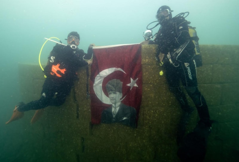 VAN GÖLÜ DERİNLİKLERİNDE TÜRK BAYRAĞI AÇILDI
