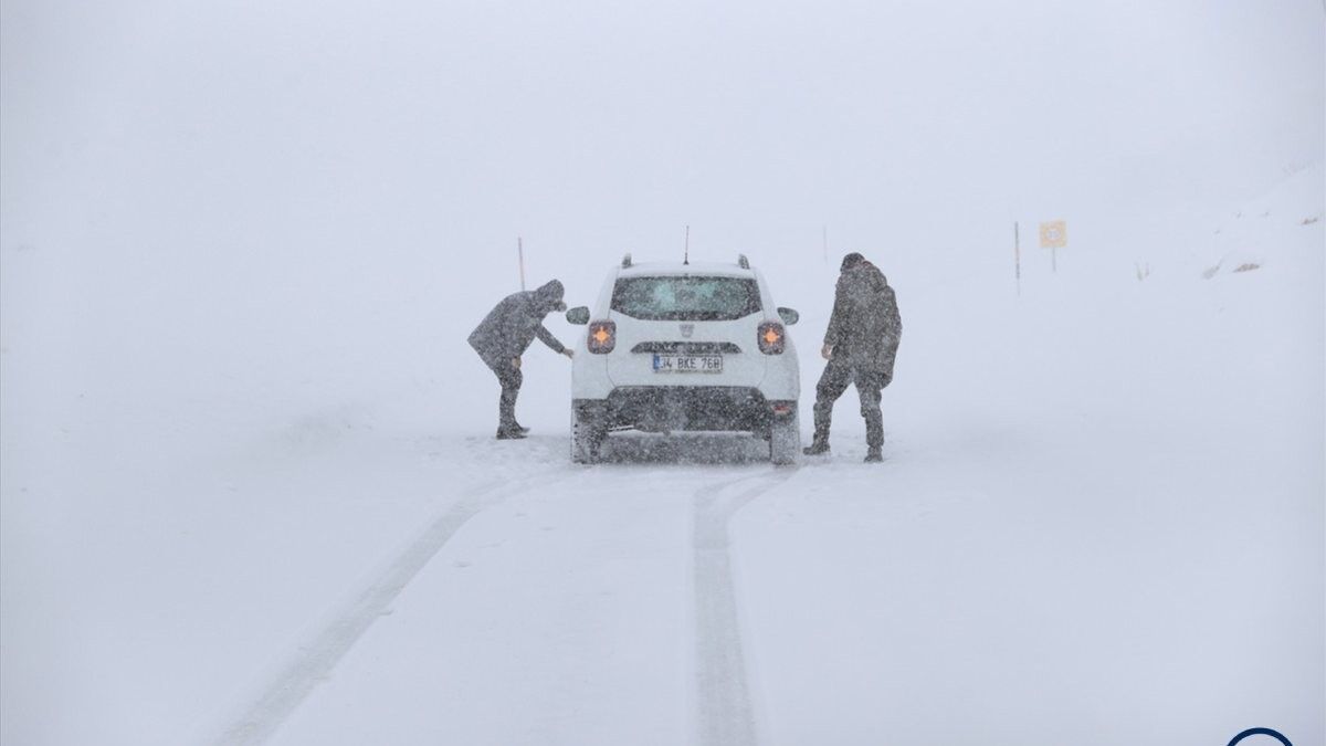 Van-Bahçesaray kara yolunun 2 bin 985 rakımlı Karabet Geçidi'nde de etkili olan kar, sürücülere zor anlar yaşattı.