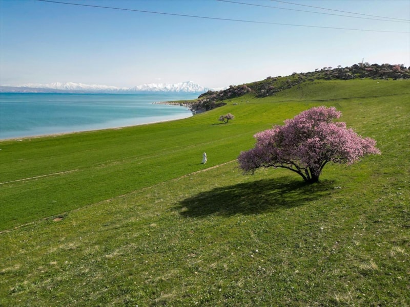 Çiçek açan badem ve kayısı ağaçlarının, Süphan Dağı, Van Gölü'nün ve gökyüzünün maviliğiyle bütünleştiği kıyılar, doğaseverleri ve fotoğraf tutkunlarını cezbetti.