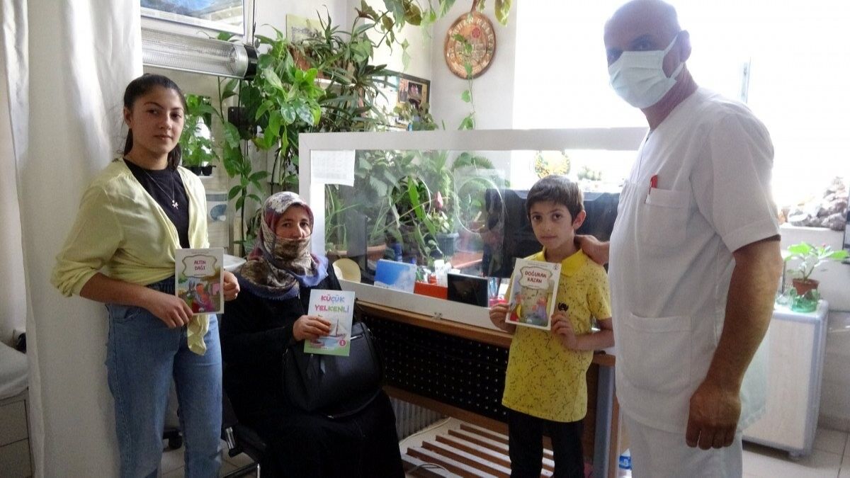 Ailesiyle muayeneye gelen 4’üncü sınıf öğrencisi Burak Emre Sakar, "Karnım ağrıyordu. Annem beni alıp aile hekimimiz olan Dr. Erhan Kalkan'a getirdi. Doktor amca beni muayene ettikten sonra bana kitap hediye etti.