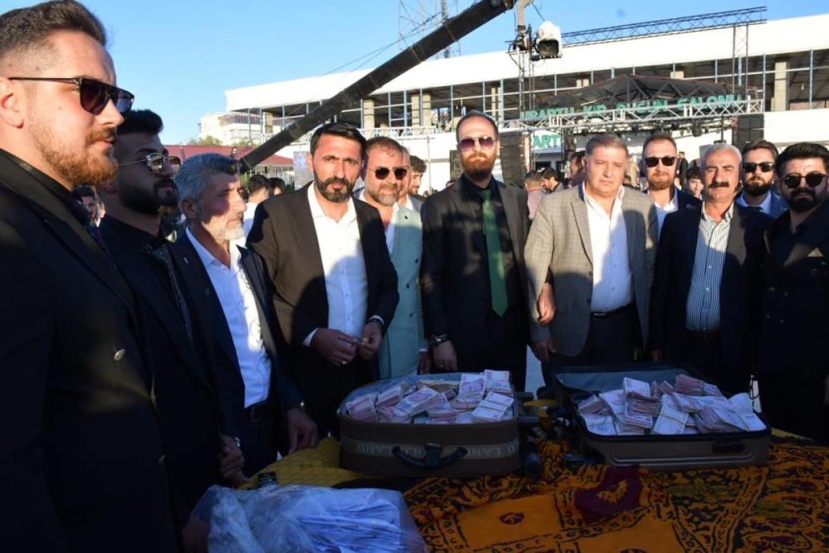 200 küçükbaş hayvanın kesilip onlarca kazanda pişirildiği ve yaklaşık 7 bin kişinin katıldığı düğünde geline 4 kilo altın, damada ise 10 milyon TL takı takıldı.