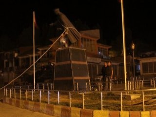 Van'ın Başkale İlçe'sinde bulunan Atatürk heykeli kimliği belirsiz kişiler tarafından iple çekilerek tahrip edildi.