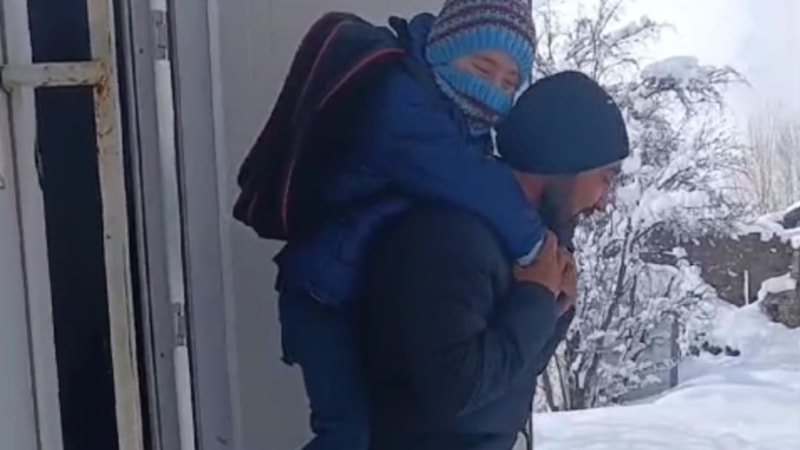Van'ın Gevaş ilçesinde bir mezrada ücretli öğretmenlik yapan Cihan Yakut, kar yağışı nedeniyle yürümekte zorlanan birinci sınıf öğrencisi Barış Arvas'ı gördü.