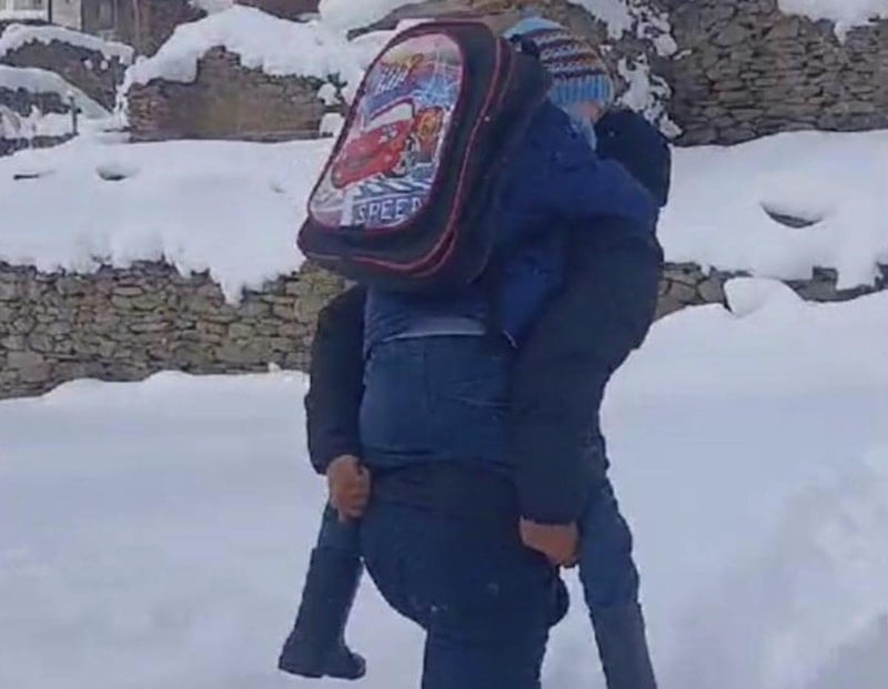 Eğitimcilerin sadece bilgi aktaran değil, hayat yolunda rehberlik eden birer kahraman olduğunu bir kez daha gözler önüne seren Cihan öğretmen, öğrencisini sırtına alarak karla kaplı yolları aştı.