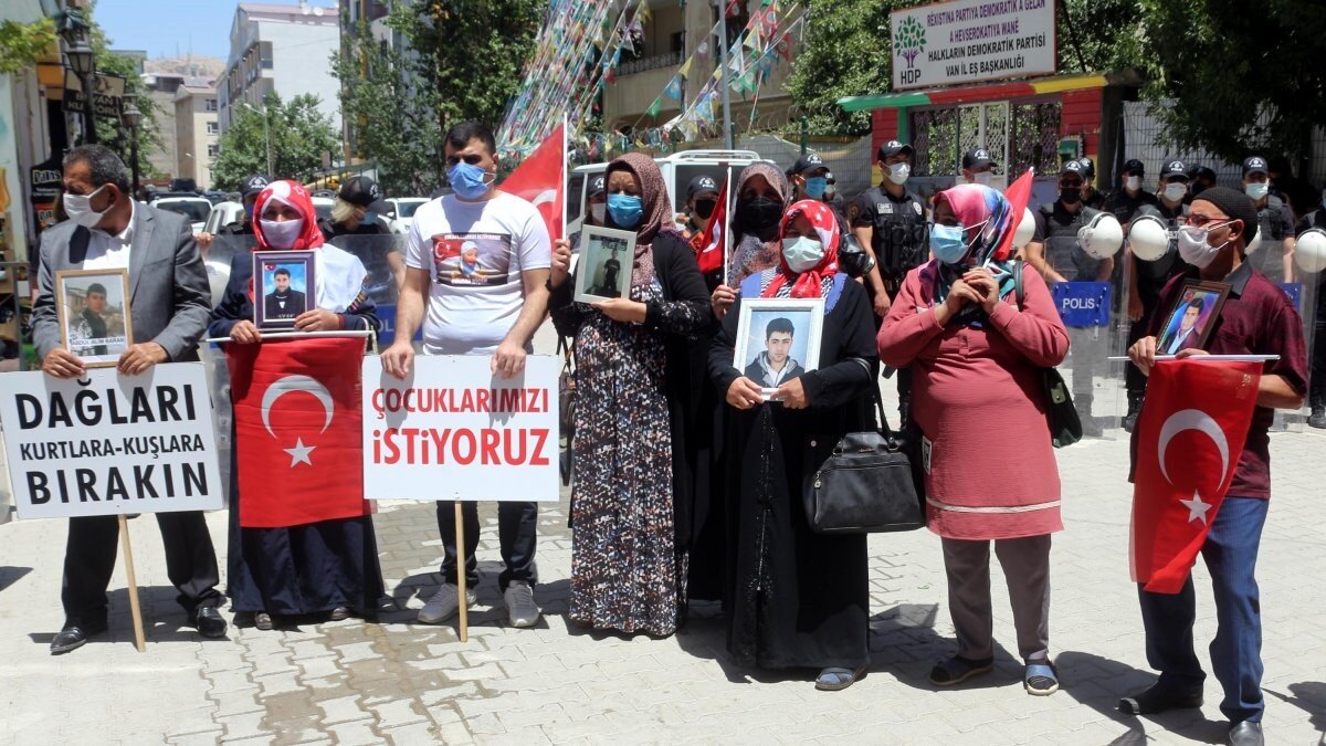 Aileler ellerinde çocuklarının fotoğrafları ve Türk bayrakları ile 'Çocuklarımızı istiyoruz', 'Anneler nöbette', 'Artık yeter yakamızdan düşün', 'Çocuklarımız kimsenin piyonu olmayacak' yazılı dövizleri taşıdı.