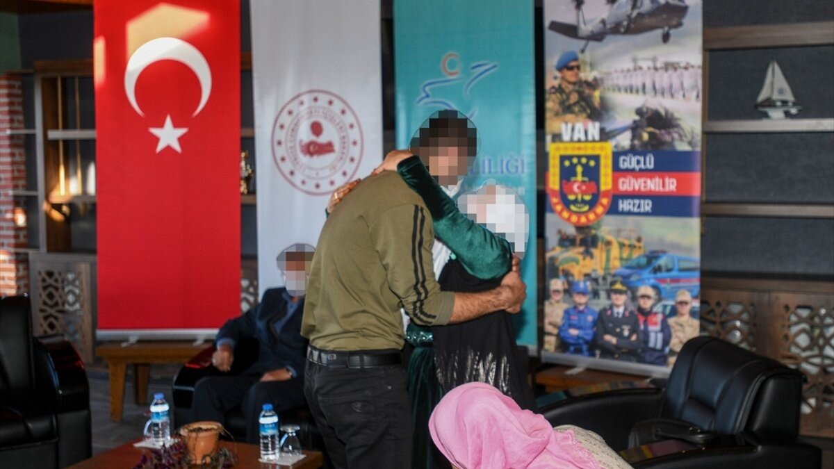 Teslim olan terör örgütü üyelerinden biri, Edremit İlçe Jandarma Komutanlığı’nda ailesiyle buluşturuldu.