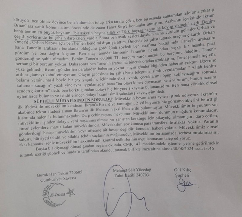 İmam İkram bana saldırırken, 'benim en büyük hayalim bir askerin başına silah ve Türk bayrağını koyup s.... dedi. Benim çeşitli yerlerimde bu şahsın darp izleri vardır.