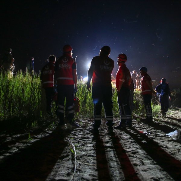 Gece 03.00 sıralarında enkazın bulunduğu bölgeye ulaşan ekipler çevrede güvenlik önlemi aldı.