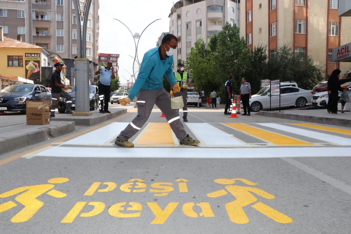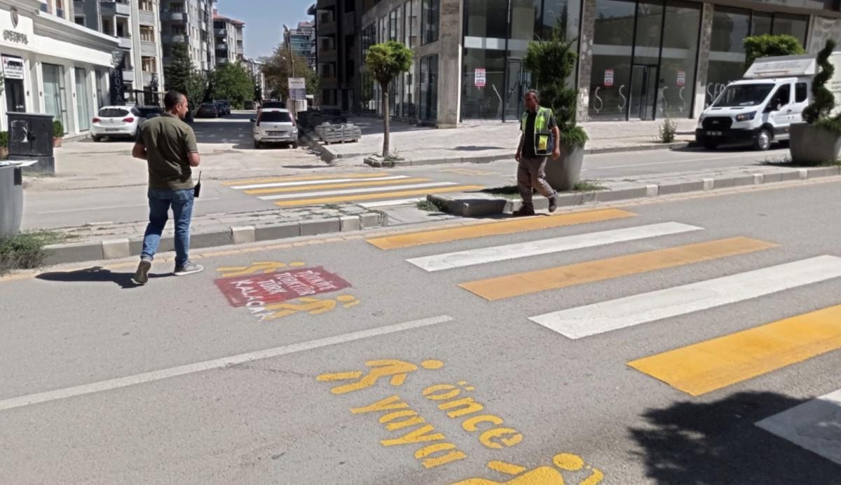 Büyükşehir Belediyesi Ulaşım Daire Başkanlığına bağlı Trafik Hizmetleri Şube Müdürlüğü ekipleri tarafından, kentin birçok caddesinde yaya geçitlerine Türkçe ‘Önce yaya’ anlamına gelen Kürtçe uyarı yazıları yazıldı.